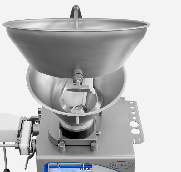 The touchscreen guarantees simple operation. The clipper socket, which is a standard feature, permits the operation of automatic clipping machines and/or additional machines. The “S” version of the RVF 327 has a servo twisting drive which supports gentle twisting of natural casings.